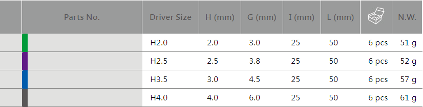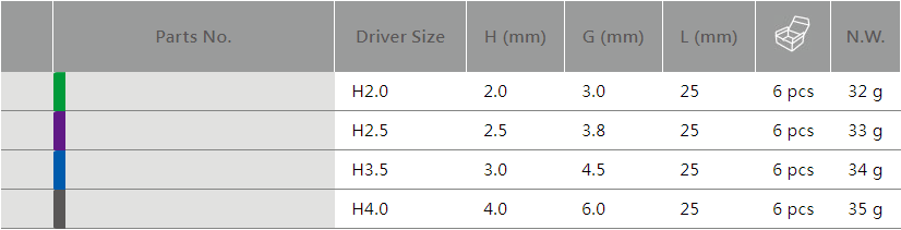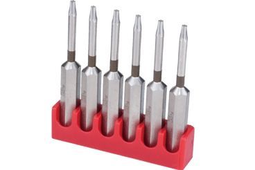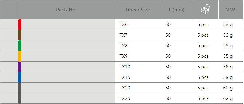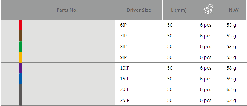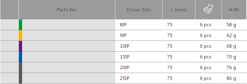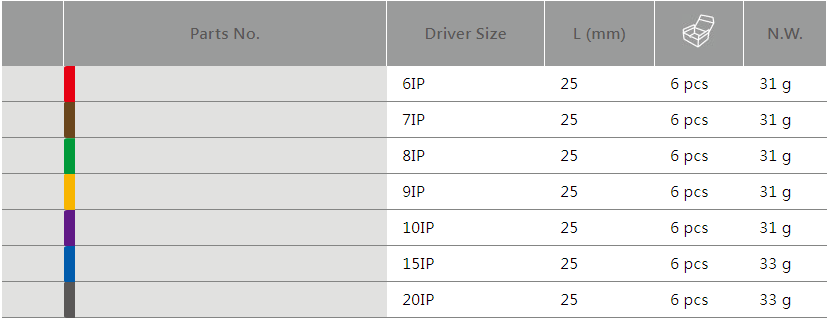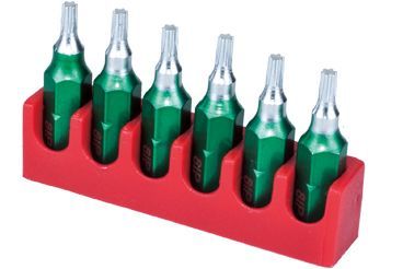 Каждая бита имеет свой цвет, соответствующий цвету на адаптерах. Выберите подходящую биту и адаптер с необходимым предустановленным крутящим моментом аналогичного цвета.